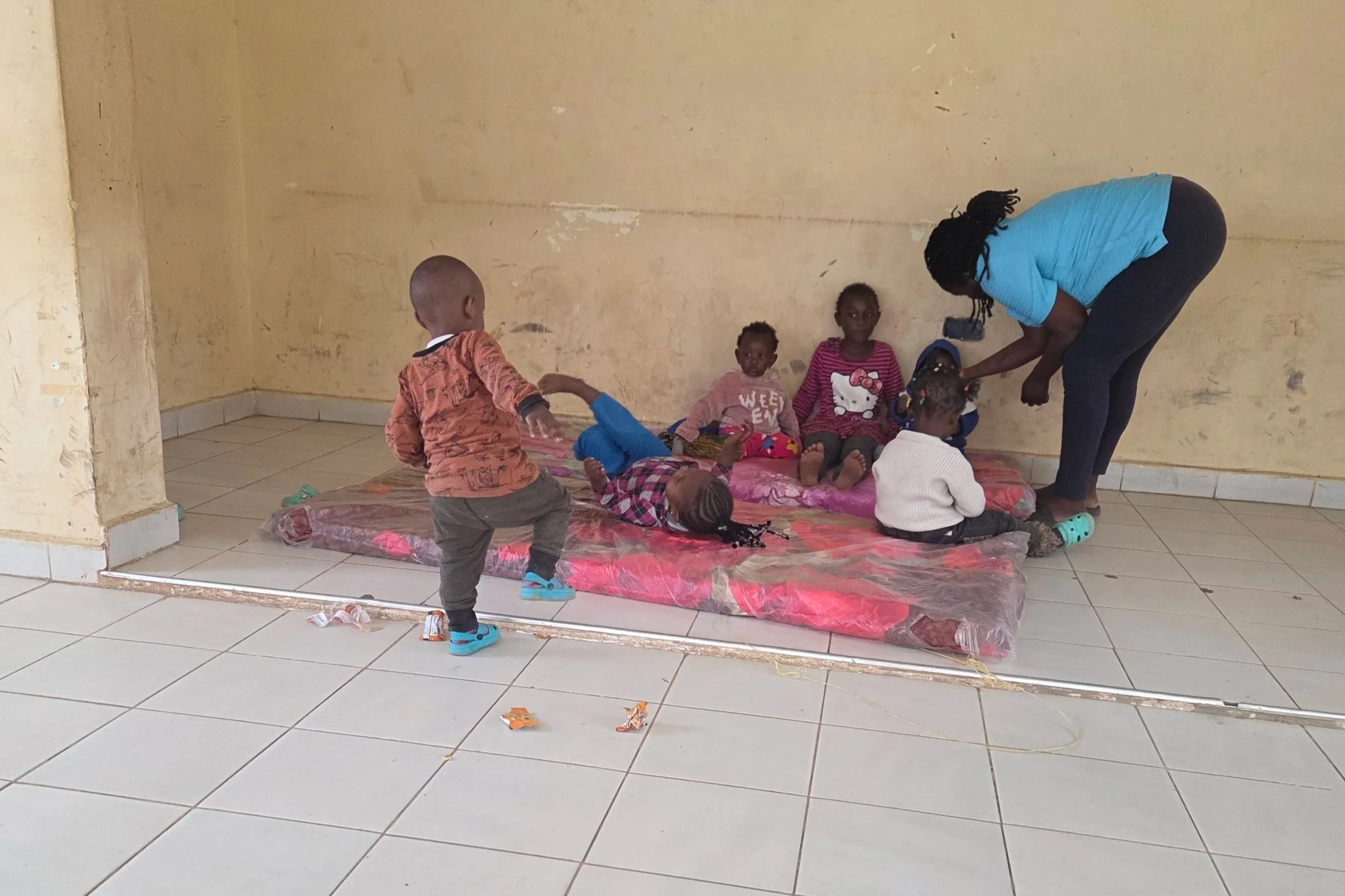 Several of the women brought toddlers or babies with them . This tends to make for a pretty chaotic class, with the toddlers running through. Virginia ran out and bought a bunch of snacks and milk for the kids. This kept them occupied for at least 30 seconds!